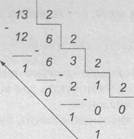 Приклад Перевести число 13(10) десяткової системи числення у двійкову й виконати перевірку розв'язку. Розв'язання. У відповідності з алгоритмом переведення цілих чисел ділимо послідовно число 13 десяткової системи числення на основу двійкової системи числення (число 2), в результаті чого отримаємо