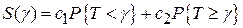 Полагаем, что функция распределения F (t) наработки до отказа Т устройства известна. В качестве критерия для расчета периодичности планового технического обслуживания примем минимум средних удельных (на единицу времени) суммарных потерь S от отказов и планового технического обслуживания. При этом будем следовать принципам определения параметров технического обслуживания. Так как рассматривается процесс на бесконечном интервале времени, то средние удельные потери при этом равны средним удельным потерям на интервале между обновлениями. Обозначим с 1 среднюю стоимость всех затрат, связанных с отказом и последующим восстановлением отказавшего устройства. В величину с 1 входят потери, связанные с ухудшением работы технологического объекта (например, из-за простоев оборудования или снижения качества управления), и потери, связанные только с трудозатратами на устранение отказов (на поиск причины отказа, его устранение, демонтаж и монтаж, организационные мероприятия, связанные с восстановлением, и т. д.). Обозначим c 1 среднюю стоимостьвсех затрат, связанных с проведением планового технического обслуживания. На интервале между обновлениями средние потери