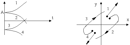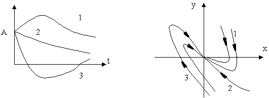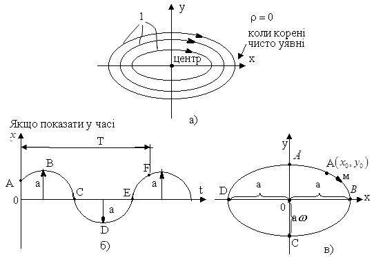 Еліпси визначають фазові траєкторії (криві 1) незатухаючих коливань (рис.2,а), що відповідають наявності пари чисто уявних коренів у рівнянні (1), якщо r = 0.