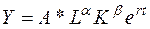В этой модели прирост национального дохода в периоде t – это гарантированный темп роста, который обеспечивает динамическое равновесие между фактическими сбережениями и предполагаемыми инвестициями. Он не достигается автоматически, поэтому для достижения такого динамического равновесия необходимо государственное регулирование экономики. Эти модели во многом носят теоретический и абстрактный характер, т.е. отражают наиболее общие зависимости процесса производства: между накоплением, потреблением и темпом роста общественного продукта (национального дохода) при неизменном органическом строении капитала. Посткейнсианское направление (Дж. Робинсон) в основу своего анализа теории экономического роста положило идею о том, что темпы роста общественного продукта зависят от распределения национального дохода. Распределение при этом является функцией накопления капитала, а скорость его накопления определяет норму прибыли и ее долю в национальном доходе. В основе неоклассического направления лежит идея саморегулирования рыночной системы и ее оптимальности, выражающейся в наиболее эффективном использовании факторов производства. Неоклассические модели экономического роста основаны на использовании производственной функции Кобба-Дугласа. Как уже отмечалось выше, они включают и НТП в число факторов экономического роста. В этой связи различают производственную функцию с экзогенным и эндогенным фактором НТП. В первом случае, т.к. НТП происходит во времени, в производственную функцию Кобба-Дугласа введен фактор времени, учитывающий темпы НТП (функция Я.Тинбергена, 1942 г.):