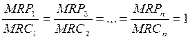 Таким образом, на конкурентных рынках фирма реализует сочетание ресурсов, которое максимизирует прибыль, если каждый фактор производства используется до момента, когда его цена равна предельному продукту в денежном выражении. Если же фирма может менять цены ресурсов, то формула (13.3) принимает следующий вид: