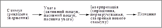 На цей процес впливають дві головні змінні. Першою є сам стимул. Його величина, інтенсивність, інформативність, новизна, позиція й контекст впливатимуть на обидві стадії процесу. Друга змінна має назву умов аудиторії і відображає індивідуальні відмінності людей, які по-різному реагують на те, що їм показують, мають різні смаки й часто зовсім різне розуміння інформації. Найважливішим аспектом вивчення процесу сприйняття є визначення того, які змінні спричиняють ті чи ті відмінності. Американські дослідники вважають, що за один день людина натрапляє на 300—500 рекламних звернень, а сприймає вона лише близько 70. Цей фільтр уваги діє на різних рівнях свідомості. Перший рівень можна назвати пасивним пошуком. Людина шукає інформацію тільки в тих джерелах, які їй доступні в повсякденному житті. На цьому рівні в людини немає гострої потреби в інформації, але щось може все-таки потрапляти до неї. Другий рівень — це процес активного пошуку, коли людина сама шукає інформацію. Вона може розпитувати друзів або переглядати журнали, якими раніше не цікавилась. У потенційного покупця можуть бути чотири основні причини звернути увагу на інформаційні повідомлення: 1. Отримання інформації, яка буде корисною (уважають, що інформація про торгову марку допомагає прийняти обґрунтованіше рішення щодо купівлі товару з цією маркою). 2. Отримання інформації, яка підтверджує його власну думку (так званий підтверджувальний перегляд реклами), та відмовлення від інформації, що суперечить їй (людина не бажає жити з почуттям дисонансу). 3. Отримання стимулювальної інформації. 4. Отримання інформації, що цікавить. Слід мати на увазі, що крім сторонньої інформації, людина, як правило, цікавиться сама собою і різноманітним продовженням свого «Я». Аматори кіно подумки ототожнюють себе із зірками екрана, інші — полюбляють щось читати про місця, де вони побували, ще інші, котрі особисто знайомі з якоюсь «знаменитістю», починають стежити за всім, що з цією «знаменитістю» відбувається. Ці чотири причини відповідають чотирьом теоріям: практичної вартості, постійності, складності й тотожності. Основна мета рекламного звернення є очевидною — воно має бути інструментом корисного інформування потенційних покупців. Проте спеціалісти-психологи вважають, що в певних ситуаціях покупці не отримують адекватної, тобто необхідної, інформації, яка їм потрібна для прийняття рішення, із джерела, що ним вони звичайно користуються. У такому разі вони можуть активно шукати інформацію в спеціалізованих журналах, технічних звітах тощо. Це дуже впливає на збільшення знань про продукт і на зміну ставлення до нього. Активний шукач інформації буде ближчим до здійснення купівлі, ніж інші. Зусилля, витрачені на пошук, підвищують і повагу до джерела інформації. Найчастіше активний пошук відбувається, коли йдеться про високий рівень ризику або невпевненості, тобто коли плануються великі покупки, які можуть призвести до фінансових ускладнень, або коли купують продукцію цілком нову. Для останнього випадку потреба в інформації є найбільшою. Потреба в інформації про продукт зменшуватиметься в міру зростання прихильності покупця до торгової марки. Для торгових марок, з якими покупець уже знайомий, потреба в інформації буде найнижчою. Ці постулати психологічних досліджень важливі для плану