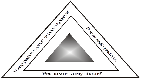 Рис. 8.3. Трикутник рекламного прибутку На лояльних покупців даної торгової марки (їх ще можна назвати прихильниками даної торгової марки) лягає весь «тягар» продажу, вони становлять ядро цільової аудиторії підприємства. Непостійні споживачі торгової марки — це, за визначенням фахівців, «кайма» продажу товарів певної марки, тобто поряд із товарними марками інших підприємств вони купують також товар даного підприємства, але роблять це не так часто, як лояльні споживачі. Рівень продажу торгової марки можна збільшити, залучивши нових споживачів товарної категорії, переконуючи безпосередніх споживачів інших торгових марок включити дану торгову марку в їхній вибір або переманюючи лояльних до інших торгових марок споживачів. Додатковими факторами вибору цільової аудиторії споживачів товарів даного підприємства є географічні, демографічні та психографічні фактори, які застосовуються для більш вузького визначення окремих груп та підгруп цільової аудиторії. Географічні фактори — це місця проживання та роботи окремих представників цільової аудиторії. Демографічні фактори охоплюють такі об’єктивні характеристики покупців, як вік, стать або рід занять. До психографічних відносять суб’єктивні характеристики щодо стилю життя, особливості характеру, життєвої позиції.