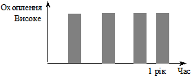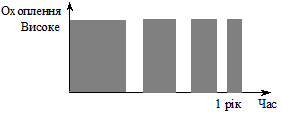 Рис. 14.1. «Рекламна куля» У більшості випадків медіа-куля буде мати максимально дозволений розмір. Її розмір визначається розміром бюджету, розрахованим одним із відповідних методів або заданим керівництвом. Обмеженість бюджету (за необмеженого бюджету таких проблем немає) змушує менеджера йти на компроміси між трьома сферами — тобто між охопленням, частотою та кількістю рекламних циклів. При цьому фахівці радять користуватися одним простим, але важливим принципом: ліпше добитися бажаного результату від декількох людей, ніж зовсім нічого не домогтись від багатьох. В основі цього принципу покладено поняття «ефективна частота». Медіа-план із фіксованим бюджетом передбачає чи охоплення більшої кількості людей декілька разів, чи невелику кількість людей багато разів. У цьому полягає компроміс між охопленням та частотою. Те саме правило діє і з погляду географічного охоплення. Рекламодавець може поставити собі за мету рідко охоплювати кожного потенційного покупця в регіоні або в країні у цілому, або частіше охоплювати кожного покупця у визначеному районі (регіоні). Компроміс між охопленням і частотою є найпоширенішим у медіаплануванні. На думку фахівців, він має завжди базуватися на ефективній частоті. Реклама з частотою, вдвічі меншою за потрібну — це марно витрачені кошти. Фахівці вважають: неможливо постійно охоплювати протягом рекламної кампанії всю цільову аудиторію. Замість того рік поділяється на деяку кількість рекламних циклів, які можуть іти один за другим безперервно чи з інтервалами. Фахівці дійшли висновку, що можливий компроміс між частотою реклами впродовж одного циклу та кількістю цих циклів. За фіксованого охоплення товар рекламується або з низькою частотою, або з ефективною частотою і меншою кількістю циклів. Концепція ефективної частоти базується на тому, що споживач має бути «опромінений» рекламою визначену мінімальну кількість разів за рекламний цикл. Насправді, вважають фахівці, Існує важлива різниця між розміщенням оголошень і рекламними контактами: розміщення рекламних звернень — це сукупний ввід рекламної інформації, а контакти — це результат, що отримують рекламодавці на індивідуальному рівні (на рівні споживача) у результаті того, що цей споживач буде мати змогу побачити чи почути рекламне звернення рекламодавця. Отже, ефективна частота — це поняття, пов’язане з контактами цільової аудиторії з рекламою. Тому під контактом розуміють розміщення рекламних звернень у такому засобі реклами, де можливо його побачать чи почують або прочитають цільові споживачі. Фахівці бачать зміст ефективної частоти у тому, аби «підвести» окремого представника цільової аудиторії до граничного рівня «опромінення» рекламою і тим самим підготувати його до вибору товарної марки, створивши сприятливе ставлення покупця до купівлі ним разрекламованого товару. Тому завданням календарного планування реклами є забезпечення частоти контактів, достатньої для ефективного впливу рекламного звернення на споживача. За медіапланування необхідно забезпечити цей достатній рівень частоти. Достатність має охоплювати обидві комунікативні задачі: поінформованості про товарну марку і або ставлення до неї, або наміри зробити покупку. Індивідуальний поріг схильності до наміру зробити покупку наведено на рис. 14.2. У 