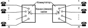 Рис. 5.4. Спектр группового сигнала с защитными интервалами Так, в современных системах многоканальной телефонной связи каждому телефонному каналу выделяется полоса частот 4 кГц, хотя частотный спектр передаваемых звуковых сигналов ограничивается полосой от 300 до 3400 Гц, т.е. ширина спектра составляет 3,1 кГц. Между полосами частот соседних каналов предусмотрены интервалы шириной по 0,9 кГц, предназначенные для снижения уровня взаимных помех при расфильтровке сигналов. Это означает, что в многоканальных системах связи с частотным разделением сигналов эффективно используется лишь около 80 % полосы пропускания линии связи. Кроме того, необходимо обеспечить высокую степень линейности всего тракта группового сигнала. 5.3. ВРЕМЕННОЕ РАЗДЕЛЕНИЕ КАНАЛОВ Принцип временного разделения каналов (ВРК) состоит в том, что групповой тракт предоставляется поочередно для передачи сигналов каждого канала многоканальной системы (рис. 5.5). В зарубежных источниках для обозначения принципа временного раз-Деления каналов применяются термины Time Division Multiplexing (TDM) и Time Division Multiply Access (TDMA).