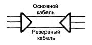 Рис. 9.10. Конфигурация «цепочка ввода-вывода» В конфигурации «точка-точка» (рис.9.11) мультиплексоры используются как оконечные. Передача может осуществляться по двум кабелям, один из которых является основным, а второй - резервным, что обеспечивает защиту от обрыва кабеля или отказа оборудования. Недостатком конфигурации «цепочка ввода-вывода» является отсутствие резервирования. Для его преодоления служит конфигурация «кольцо» (рис.9.12). Подобная конфигурация является одной из основных при построении сетей SDH.