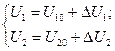 Початкове значення параметрів позначимо U10 та U20. Під час зміни режиму роботи блока або під час зміни стану елементів схеми параметри U10 та U20 отримують деякі прирости ΔU1 та ΔU2, за яких
