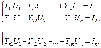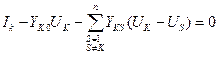 де YKK – власна провідність k -го вузла. Параметр YKS із виразу (4) називається взаємною провідністю k-го та s-го вузлів. Якщо припустити, що розглянуто n вузлів принципової електричної схеми, то отримуємо систему рівнянь: