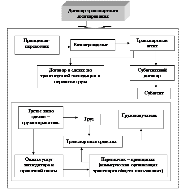 Рис. 4. Отношения на рынке транспортных услуг по договору транспортного агентирования.