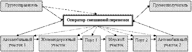 Рис.6. Логистическая схема организации доставки грузов в интермодальном сообщении с участием оператора смешанной перевозки