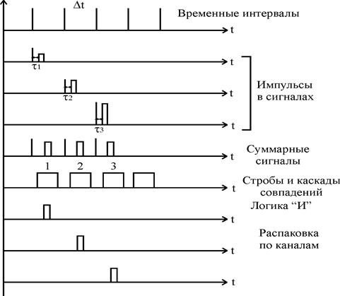 Рис. 8.2. Структура сигналов во временной области при временном уплотнении каналов