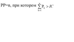 11.2.3. Метод расчёта периода окупаемости Этот метод - один из самых простых и широко распространен в мировой учетно-аналитической практике, не предполагает временной упорядоченности денежных поступлений. Алгоритм расчета срока окупаемости (РР) зависит от равномерности распределения прогнозируемых доходов от инвестиции. Если доход распределен по годам равномерно, то срок окупаемости рассчитывается делением единовременных затрат на величину годового дохода. При получении дробного числа оно округляется в сторону увеличения до ближайшего целого. Если прибыль распределена неравномерно, то срок окупаемости рассчитывается прямым подсчетом числа лет, в течение которых инвестиция будет погашена кумулятивным доходом. Общая формула расчета показателя РР имеет вид: PP=n, при котором IC > Σ