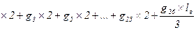 V=V1+V3+V5+…+Vn+Vв=g1 В формуле g1,g3…,g25 – площади сечений в м2 в коре на середине 2-метровых отрубков, т.е. на нечетных метрах, g26 – площадь основания вершинки, длина которой составит: