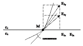 З або також випливає, що , тому вектор підходить до межі по дотичній. Подальше використання граничних умов або , і дає: тобто, існування поля в середовищі 1 при його відсутності в середовищі 2 зумовлено поверхневими зарядами і струмами.