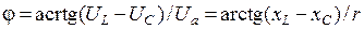 Векторна діаграма вихідного (рис. 2.18, а) і перетвореного (рис. 2.18, б) кола, що наведена на рис. 2.19, а (при побудові умовно прийнято UC > UL) може бути зведена до прямокутного трикутника напруг (рис. 2.19, б). У цьому трикутнику, один з катетів є пропорційним спаду напруги
