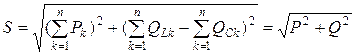 В результаті множення кожної зі сторін трикутника напруг на струм кола отримуємо трикутник потужностей (рис. 2.20, б). У цьому прямокутному трикутнику, один з катетів є пропорційним активній потужності Р кола, другий – реактивній потужності jQ = j (QL - QС) кола, а гіпотенуза – повній потужності S кола. З аналізу трикутника потужностей випливає, що при послідовному з’єднанні опорів активну і реактивну потужності кола синусоїдного струму можна визначати як суми відповідних потужностей k ділянок кола: