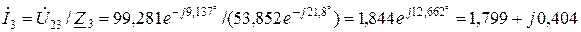 У випадку, коли за умовою задано діюче значення напруги джерела, момент часу, для якого виконується розрахунок, може бути обраний довільно. Разом з тим, з метою зручності, виконання аналізу кола частіше обирають момент, коли у системі u = f (wt) синусоїда напруги джерела проходить саме через початок координат. За законом Ома комплекс струму кола – він же комплекс струму на першій ділянці з’єднання, буде, А: