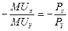 В точке касания (Е) кривой безразличия с наиболее низко расположенной бюджетной линией будет достигнута поставленная цель: данная комбинация двух благ обеспечивает искомую полезность и стоит менее всего. Обратим внимание, что в точке касания наклоны двух кривых одинаковы. Наклон кривой безразличия равен предельной норме замещения. Наклон бюджетной линии равен отношению цены товара Х к цене товара У (с учетом минуса), или — Рх/Ру Приравняв известные нам формулы наклона этих кривых, получим: