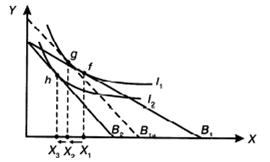 Рис. 3.11 Эффект дохода и эффект замещения при повышении цены нормального товара Х