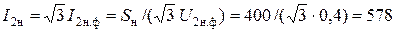 Трифазний трансформатор типу ТМ–400/10 промислової частоти 50 Гц має номінальні паспортні дані: потужність S н = 400 кВА; лінійні напруги U 1н = 10 кВ та U 2н = 0,4 кВ; втрати у дослідах холостого ходу Р 0 = 1080 Вт та короткого замикання Р кз = 5900 Вт; напруга короткого замикання U кз = 0,0045 U 1н; схема з‘єднання обмоток Y/Δ. Визначити: фазні напруги трансформатора, лінійний і фазний коефіцієнти трансформації, номінальні струми первинної і вторинної обмоток, активний, реактивний і повний опори обмоток в режимі короткого замикання, напругу вторинної обмотки і коефіцієнт корисної дії для завантаження 80 % від номінального при cosj2 = 0,95 та 0,7. Номінальні фазні напруги трансформатора, кВ: обмотки ВН, які з‘єднані у зірку –