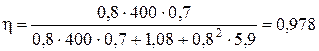 При b = 0,8 та cosj2 = 0,95 (sinj2 = 0,39) напруга вторинної обмотки та ККД трансформатора будуть: