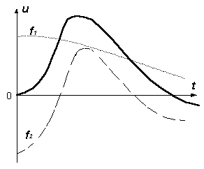 При коммутациях высоковольтных цепей возникают импульсы перенапряжений, имеющие время нарастания до 1000 микросекунд и длительность до полуспада порядка нескольких миллисекунд. Для испытаний устойчивости изоляции к таким перенапряжениям используются генераторы коммутационных импульсов, построенные по разнообразным схемам. Одна из простейших схем генератора коммутационных импульсов показана на рис. 10.1. Конденсаторы С1 и С2 этой схемы заряжаются от высоковольтного выпрямителя V1. Запуск производится путем подачи поджигающего импульса напряжения на искровой промежуток ИП. После пробоя этого промежутка в двух отдельных контурах L1 C1 и L2 C2 начинаются затухающие колебания. Частоты контуров выбраны таким образом, чтобы f 2=(3..5) f 1. Импульсный трансформатор T2 дополнительно увеличивает напряжение, причем на его вторичной обмотке создается разность напряжений двух контуров (рис. 10.2). Длительность фронта такого импульса немного меньше половины периода второго контура, то есть