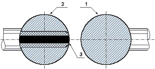 Конденсаторы ГИН заряжаются от высоковольтного выпрямителя через зарядные резисторы Rзар параллельно до одинакового напряжения U 0. На промежуток FV1 подается дополнительный поджигающий импульс напряжения, так что FV1 пробивается. Потенциал точки 3 практически мгновенно становится равным U0, поскольку величина сопротивления резистора Rд мала и мала постоянная времени цепочки Rд CП. Потенциал точки 4 по отношению к земле при этом равен сумме потенциала точки 3 и напряжения U 0, а потенциал точки 5 остается нулевым, поскольку паразитная емкость CП не успевает зарядиться через сравнительно высокоомный резистор Rзар. Напряжение на промежутке FV2 оказывается равным 2 U 0 и промежуток FV2 пробивается, что приводит в первый момент времени к появлению напряжения 3 U 0 на промежутке FV3. Аналогично пробивается и промежуток FV4, так что все четыре конденсатора оказываются соединенными последовательно через искровые промежутки и резисторы Rд. Резистор Rд используется для демпфирования колебаний в контуре C1-FV1-CП, в котором из-за наличия индуктивностей проводов могут возникнуть затухающие колебания с большой амплитудой. На рис. 10.5 красным цветом показан образующийся при формировании импульса контур разряда конденсаторов. Напряжение 4 U 0(или nU 0 при n конденсаторах) называется суммарным зарядным напряжением ГИН; другой важной характеристикой ГИН является наибольшее значение запасаемой генератором энергии В качестве пускового промежутка FV1 обычно используется трехэлектродный разрядник (тригатрон). На рис. 10.6 представлено сечение тригатрона; при поджигающего импульса напряжения между электродами 2 и 3 промежуток между ними пробивается, создавая область ионизации в основном разрядном промежутке, из-за чего пробивается и основной промежуток между электродами 1 и 2.