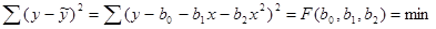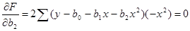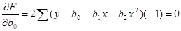 Приравнивая к нулю частные производные функции F по коэффициентам b0, b1, b2, получим: