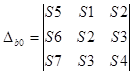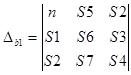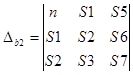 Это – система из 3-х уравнений с 3-мя неизвестными b0, b1, b2. Из курса математики известно, что эта система уравнений может быть решена с помощью определителей. Определитель, составленный из неизвестных коэффициентов уравнений равен: Определитель, полученный заменой в определителе D столбца из коэффициентов при b0, столбцом свободных членов системы уравнений: