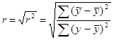 Для расчёта коэффициента детерминации r2, характеризующего точностные свойства уравнения регрессии, удобно пользоваться формулой:
