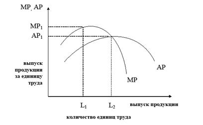 Рис.21. Семейство кривых единичных издержек фирмы в краткосрочном периоде. Стратегическое значение для фирмы имеют предельные издержки. Они показывают величину дополнительных издержек, которые возникают у фирмы в результате выпуска дополнительной единицы продукции наиболее дешевым способом, или величину издержек, которые можно сэкономить при сокращении производства на единицу продукции. Средние издержки такой информации не дают. Иначе можно сказать, что предельные издержки — это приращение общих издержек в результате производства дополнительной единицы продукции. Они обозначаются МС (англ. marginal costs), а их величина представляет собой разность между издержками производства n и n-1 единиц продукции: МС = ТСn -ТСn-1 или МС = VCn - VCn-1. Динамика предельных издержек изображена на рис.16. Комментарии к расположению кривых · Кривая средних постоянных издержек (AFC) имеет вид понижающейся кривой. Поскольку абсолютная величина общих постоянных издержек неизменна, то средние постоянные издержки по мере роста масштаба производства падают. · Кривая средних издержек обыкновенно имеет дугообразную форму. Она непосредственно зависит от кривых средних постоянных и средних переменных издержек. Сначала средние издержки высоки, т.к. постоянные издержки распределяются на небольшой объем произведенной продукции. По мере роста производства они быстро падают, доходя до минимума, а затем растут. Здесь основное влияние на величину средних издержек оказывают не постоянные, а переменные издержки. · По мере роста масштабов производства кривые средних (ATC) и средних переменных издержек (AVC) имеют тенденцию к сближению. Обратите внимание на то, что средние издержки достигают минимального значения при большем объеме производства, чем средние переменные издержки. · Взаимное расположение предельных и средних издержек тоже подчинено определенным закономерностям. Для первой единицы продукции средние переменные и предельные (MC) равны – их кривые исходят из одной точки. Сначала предельные издержки сокращаются быстрее, чем средние, поэтому графически они расположены ниже кривых средних и средних переменных издержек. Затем они достигают своего минимума и начинают расти, пересекая кривые средних переменных и средних издержек в точках их минимума. Пока фирма находит все необходимые ресурсы по постоянным ценам изменение издержек в краткосрочном периоде можно полностью объяснить изменениями среднего и предельного продуктов переменного фактора (рис.22.).