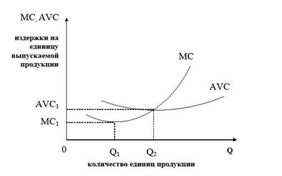 Рис.22.Взаимоотношение между выпуском продукции и издержками U-образная форма кривой AVC отражает тот факт, что средний продукт переменного фактора АР сначала увеличивается, достигая максимального значения, а потом снижается. Форма кривой AVC зеркально отображает форму кривой АР, а точка минимального значения AVC совпадает с точкой максимального значения АР при объеме Q2. Изменение предельных издержек МС также является результатом изменения предельного продукта МР. Точка уменьшения МР совпадает с точкой увеличения МС при объеме Q1. Итак, процесс производства в краткосрочном периоде можно разделить на 3 стадии. Стадия I начинается от нулевого уровня выпуска до точки максимального среднего продукта переменного фактора. Это соответствует началу производства от нуля до точки, в которой средние переменные издержки минимальны. Стадия II соответствует такому уровню выпуска, для которого средний продукт переменного фактора уменьшается, а величина предельного продукта имеет положительное значение. Это интервал объема выпуска от минимальных AVC до максимально возможного в краткосрочном периоде объема выпуска. На этом интервале вместе с выпуском увеличиваются и средние, и предельные издержки. На стадии III процесс производства идет при отрицательном значении предельного продукта переменного фактора. Комбинация факторов на этой стадии не включается в производственную функцию.