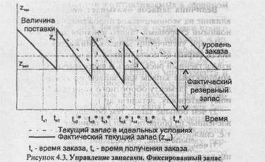 sскл – издержки по складированию; Sобсл- издержки по обслуживанию закупок; Ssum- суммарные издержки на единицу запаса. В практике хозяйственной деятельности применяют две основные системы управления запасами: 1. основана на фиксации фактического остатка запаса на складе, при котором делается 2. основана на фиксации интервала времени между заказами новой партии поставки.