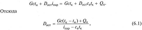 где G – расход нагреваемой среды; с, св – удельные теплоемкости нагреваемой среды и воды (конденсата); t1, t2 – начальная и конечная температуры нагреваемой среды; iпар – удельная энтальпия пара. При нагревании глухим паром теплота передается через стенку – поверхность теплообмена. Расход глухого пара Dгл определяется по зависимости, аналогичной (6.1),