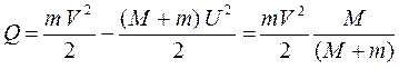 Совместное движение вагонов после сцепления является признаком неупругого удара. Как известно, при неупругом ударе тел кинетическая энергия не сохраняется. То же наблюдается и при сцеплении вагонов: часть кинетической энергии накатывающегося вагона, которой следует потеряться, превращается частично в энергию срабатывания автосцепок крайних вагонов и остальное в теплоту вследствие работы сил трения в поглощающих механизмах автосцепок и сил трения при качении колес по рельсам. Потери Q кинетической энергии в процессе сцепления, которые должны быть, равны разности кинетических энергий вагона до сцепления и вагона с составом после сцепления
