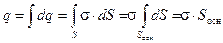 Это величина, рассчитанная по определению потока. Теперь воспользуемся теоремой Гаусса, заметив, что заряд q, «находящийся внутри гауссовой поверхности», в данном случае сосредоточен на площадке S = S осн, «вырезанной» цилиндром на бесконечной плоскости