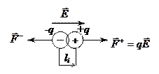 Рис. 5.2. б) Полярные диэлектрики Полярные молекулы не меняют величину своего дипольного момента под действием электрического поля. В отличие от неполярных молекул, они ведут себя как жёсткие диполи. В электрическом поле на такую жесткую молекулу действует вращающий момент, стремящийся ориентировать дипольные моменты молекул вдоль поля (рис. 5.3.).