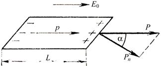 Рис. 5.5. Электрический момент призмы равен q ’ × L = s’ × S × L. Здесь q ’ и s’ — связанный заряд и плотность связанного заряда на основании призмы. Учитывая, что объём призмы равен V = S × L × cosa, этот же электрический момент представим в виде: s’ × SL = P × V = P × SL cosa = Pn × SL. Отсюда легко получить искомое соотношение: s’ = Pn. (5.6) Этот результат позволяет сделать следующие заключения: 1. поверхностная плотность связанных зарядов равна нормальной составляющей вектора поляризации; 2. заряд, прошедший в процессе поляризации через единичную поверхность, нормальную к направлению смещения зарядов, равен модулю вектора поляризации.