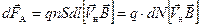 Теперь, разделив эту силу на число носителей заряда dN, получим силу Лоренца — силу, действующую на заряд q, движущийся со скоростью