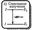 Атом, находясь в возбужденном состоянии 2, может спонтанно (без внешних воздействий) перейти в основное состояние, испуская при этом фотон с энергией hv = Е2—Е1 Процесс испускания фотона возбужденным атомом без внешних воздействий называется спонтанным излучением. Спонтанные переходы взаимно не связаны, поэтому спонтанное излучение некогерентно.