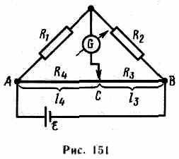 Длины l 3 и l 4 легко измеряются по шкале, a R 2 всегда известно. Поэтому уравнение (101.8) позволяет определить неизвестное сопротивление R 1.