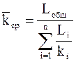 При горизонтально-линейной фильтрации жидкости через пласт, имеющий несколько параллельно последовательно расположенных изолированных зон пористой среды различной проницаемости (рис. 1.18), средняя величина коэффициента проницаемости такого пласта рассчитывается с учетом протяженности (длины) фильтрации флюидов по уравнению: