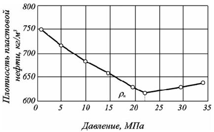 Плотность пластовой нефти зависит от состава нефти, пластовых давлений (рис. 3.1) и температур, количества растворённого газа.
