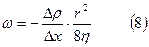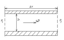 Из формулы (5) видно, что η не зависит от давления, за исключением случая сильного разрежения газа, т.е. когда λ – средняя длина свободного пробега молекул становится больше размера сосуда, в котором находится газ. Для жидкостей сила внутреннего трения выражается законом Ньютона. η – коэффициент вязкости для жидкостей находится в пределах 10-3-1 кг/м∙с. И в зависимости от температуры (η уменьшается с повышением температуры). Вязкость уменьшает скорость течения жидкости по трубе (руслу). Пуазейль (1841г.) установил, что «Средняя скорость ω ламинарного течения жидкости по трубе пропорциональна градиенту давления Δρ/Δx жидкости, квадрату радиуса r трубы и обратно пропорциональна коэффициенту вязкости η жидкости.