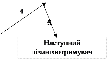 1 – оформлення договору фінансового лізингу; 2 – продаж предмету лізингу лізингодавцю; 3 – передача продавцем (постачальником, власником) предмета лізингу лізингоодержувачу; 4 – письмова згода лізингодаваця на сублізинг, що є обов’язковою умовою договору сублізингу; 5 – сублізинг; 6 – оформлення договору фінансового лізингу та передача предмета фінансового лізингу.