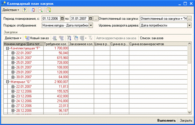 При заполнении дерева анализируются заказы поставщикам, которые еще не закрыты, т.е. по которым имеются не поставленные до конца номенклатурные позиции.