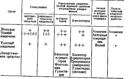 Подготовка к операции занимает 2—3 ч в зависимости от продолжительности и тяжести кишечной непроходимости. Иногда при особом рассмотрении причин этот период бывает значительно дольше (в отличие от перитонита, который требует скорейшего вмешательства). Сведения о мероприятиях можно почерпнуть в главе «План лечебных мероприятий». Здесь мы ограничимся обсуждением некоторых особенностей. В предоперационном периоде достаточно грубой коррекции (лечение шока, олигоанурии, а иногда нарушений кислотно-щелочного баланса). В послеоперационном периоде осуществляется тонкая коррекция. В предоперационном периоде особенно важно проводить исследование параметров кровообращения, диуреза и кислотно-щелочного баланса. В послеоперационном периоде, кроме названий, определяются и другие показатели (Schega). — При признаках шока начинают вводить коллоидные растворы (около 15—20 мл/кг массы, что соответствует 1—1,5 л для взрослого) для возмещения жидкости, а затем электролитные инфузионные растворы (Е153, С50; более точные рекомендации см. План лечебных мероприятий п. Е4 6.2.2). При отсутствии признаков шока немедленно начинают терапию электролитными инфузионными растворами. При дефиците белка, который чаще наблюдается при кишечной непроходимости (опухоли), применяют также альбумин и ПРП. Кровь переливают с учетом гематокрита (необходимо помнить о гемоконцентрации при кишечной непроходимости). Общая доза в первые 24 ч достигает 2,4—3 л/м2 тела. Скорость и объем введения инфузионных сред окончательно определяют по клинической симптоматике и параметрам кровообращения. При тяжелом шоке проводят мероприятия, изложенные в главе «Шок». — Дополнительная кровопотеря компенсируется миллилитр в миллилитр (см. План лечебных мероприятий). — Важно скорейшее усиление диуреза. Для этого используют маннитол. — Отклонения кислотно-щелочного баланса выравнивают в соответствии с его параметрами. — Целенаправленная компенсация нарушенного баланса натрия проводится в соответствии с уровнем натрия в плазме. Пока в послеоперационном периоде диурез остается отрицательным, от введения калия воздерживаются. При достаточном диурезе, напротив, введению калия придается большое значение. — Предлагаемая терапия продолжается в период операции и после нее. Следовало бы обратить особое внимание на инфузии маннитола для поддержания диуреза. Возмещение крови при операции можно рекомендовать только при значительных кровопотерях. В периоде эвентрации скорость инфузии нужно увеличить. При составлении плана послеоперационного лечения нужно помнить о парентеральном питании. — Для обеспечения регулярной перистальтики вначале корригируют водный и электролитный баланс. Для возбуждения перистальтики рекомендуют применять парасимпатикомиметики — неостигмин (прозерин), пиридостигмин, а в последнее время также блокаторы а- и бета-рецепторов (табл. 17). Catchpole описывает следующий метод: после компенсации водного и электролитного баланса (особенно калия!) вводят в течение 40 мин 20 мг гуанетидина или фентоламина с измерением каждые 5 мин пульса и артериального давления. Таблица 17. Влияние парасимпатической и симпатической нервной системы, блокаторов а - и бета-рецепторов, а также лаиаротомии на моторику желудочно-кишечного тракта (Catchpole) Перескан. стр.178