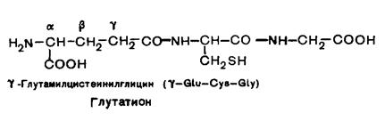 Продукт реакции называется трипептидом. Один из наиболее распространенных трипептидов – глутатион – содержится во всех животных, растениях и бактериях. Глутатион участвует в ряде окислительно- восстановительных процессов. Он выполняет функцию протектора белков и защищает свободные тиольные группы от нежелательного окисления.