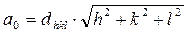 Схема фокусування променів за Брегом-Брентано Кожний пік на рентгенограмі є відбиттям n-го порядку від серії площин (hkl) з міжплощинною відстанню dhkl. Згідно рівнянню Вульфа-Брегга, положення dhkl на дифрактограмі (угол q) визначається співвідношенням: 2 d sin q = n l Þ Оскільки l (довжина хвилі характеристичного випромінювання, в якому одержана дифрактограма) величина відома, то величина визначення міжплощинних відстаней зводиться до знаходження кутів q для всіх ліній рентгенограми. Таким чином, рентгенограму характеризують положення та інтенсивністю дифракційних максимумів. Для цього вимірюють положення максимумів на рентгенограмі в градусах за шкалою 2q. Точність вимірювання положення піку 2q залежить від режиму його реєстрації та від ступеня розмитості дифракційного піку. Зазвичай для стандартних вимірювань точність 2θ коливається в інтервалі ± 0.01-0.03°. Потім, знаючи 2q и q, визначають dhkl. Сталу ґратки а0 визначають за формулою: