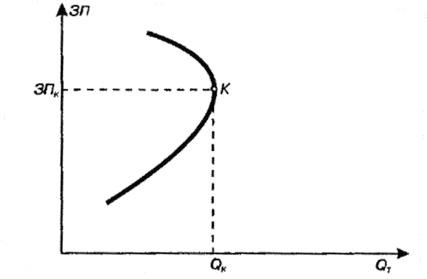 Рис. 15.2. Проявление эффекта замещения и эффекта дохода на рынке труда Однако уровень заработной платы определяется не только экономическим интересом, но и этикой, менталитетом нации. В частности, сама переломная точка К между эффектом замещения и эффектом дохода во многом определяется тем, ориентируется ли человек на ценности потребительского общества, навязывающего в качестве наивысшей ценности деньги, богатство, материальный достаток, или общества, в котором превалируют духовные ценности, пребывание в гармонии с природой и отдается предпочтение принципу необходимой достаточности материального благосостояния. Совершенно очевидно, что по своей сути эффекты замещения и дохода – это ещё одно, наряду с пирамидой Маслоу, свидетельство наукообразного способа навязывания рыночного способа мышления человеку и обществу, который позволяет капиталу (буржуа) достигать своих целей путем внушения населению первичности материальных ценностей, вторичности и второстепенности духовных. Эта завуалированная форма подчинения труда капиталу, которая дополняет такие средства нагнетания потребительства, как реклама, мода, демонстративное и престижное потребление. Именно потребительство – предпосылка, условие и факт процветания и установления господства власти капитала.